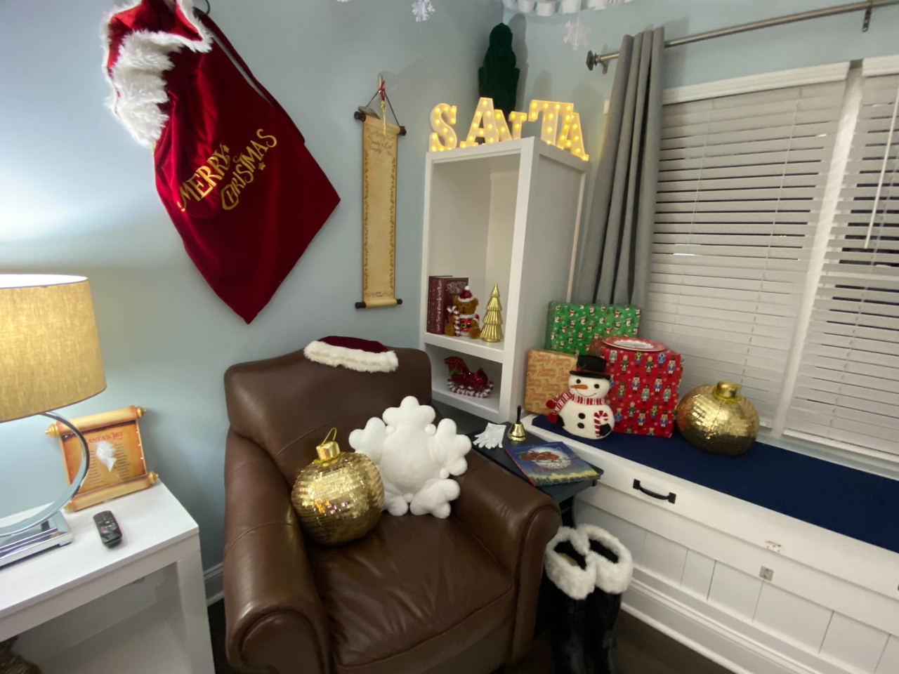 Santa’s Corner with his favorite chair and accessories