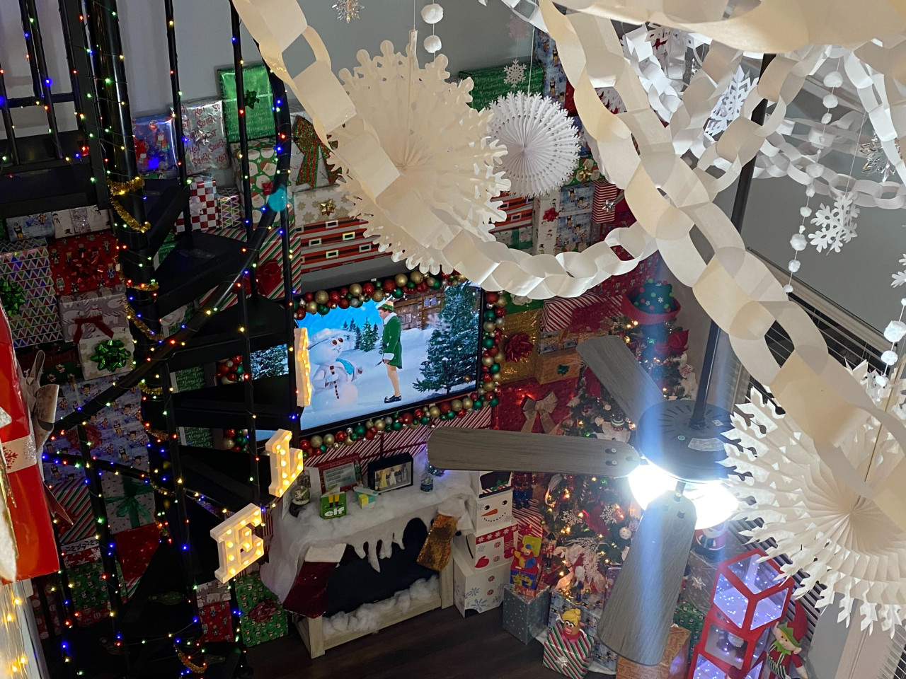 From the moment you arrive, you’ll be surrounded by floor-to-ceiling Christmas décor, with paper snowflakes and classic paper chain garlands lining every ceiling, just like Buddy’s world at the North Pole.